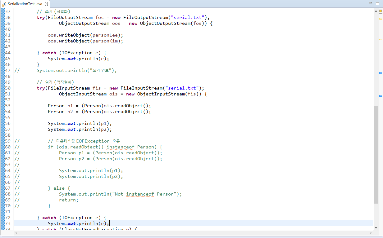 ※ 역직렬화 과정에서 안정적인 다운캐스팅을 수행할 때 EOFException 오류에 대한 처리를 하지 못한다.