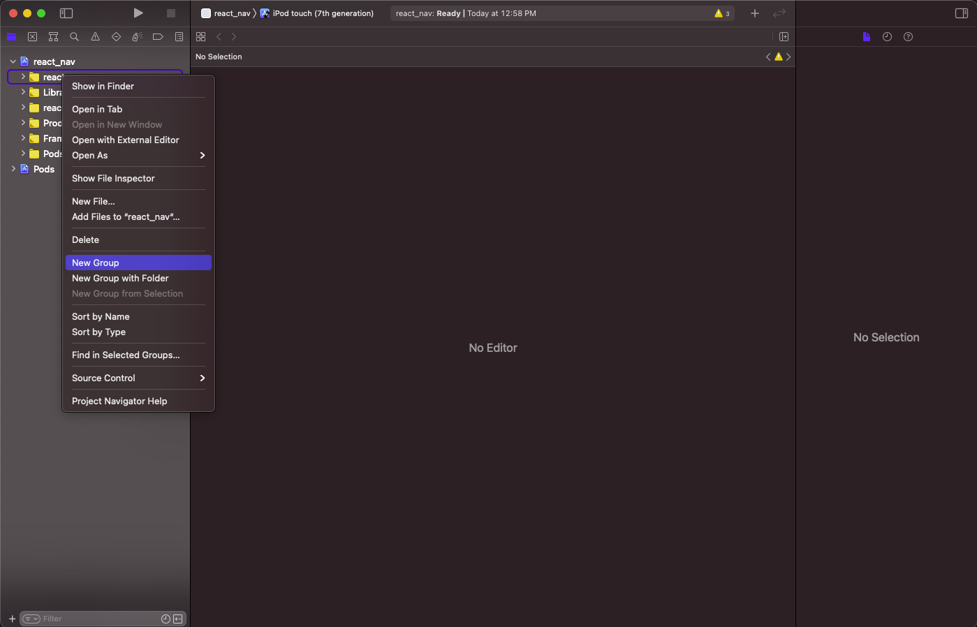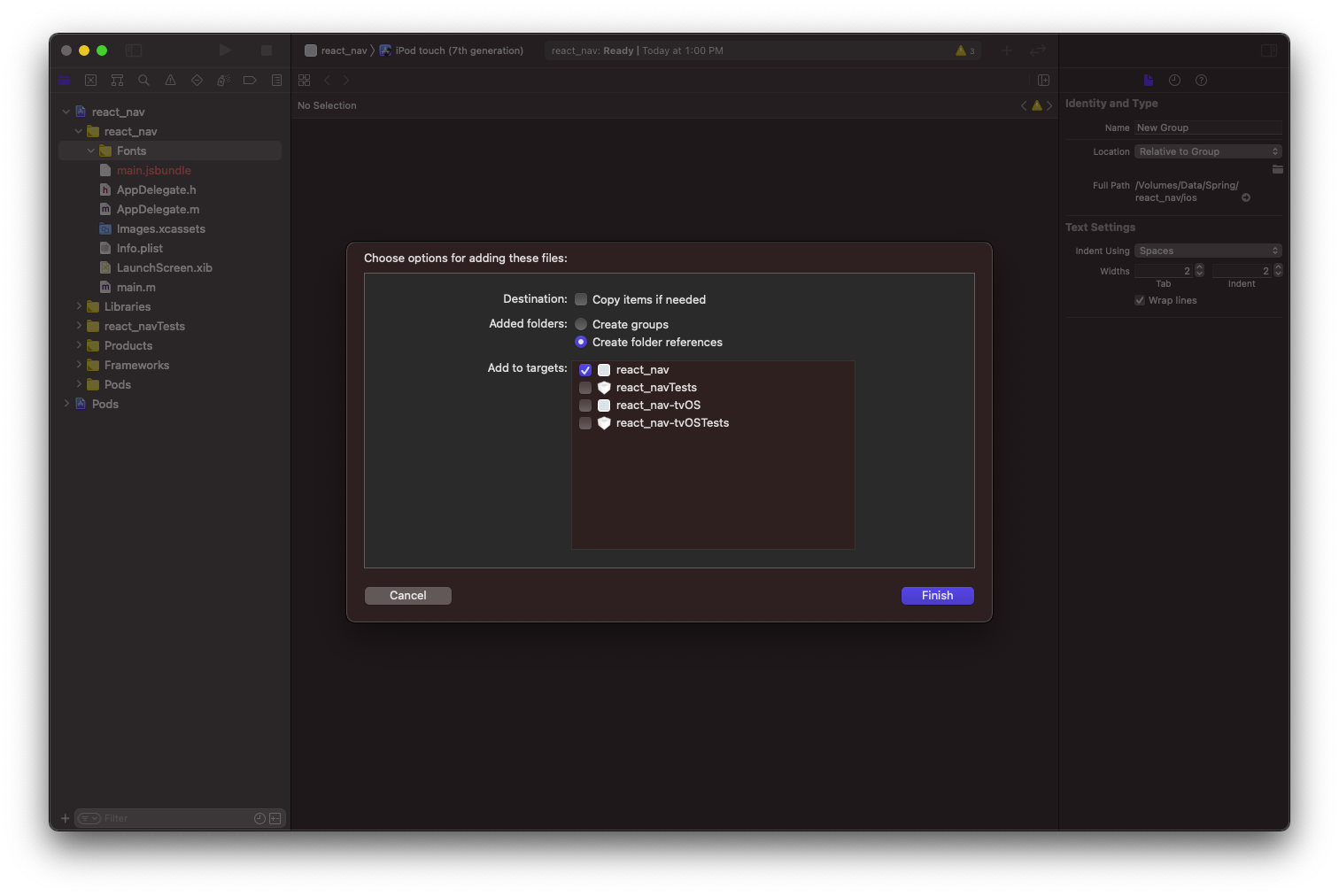 - xcode로 프로젝트의 ios 폴더를 열고, Fonts라는 New Group을 추가 (1)