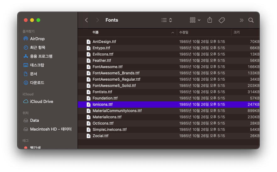 예를 들어 Ionicons 아이콘을 사용한다면, 다음과 같이 처리할 수 있다.