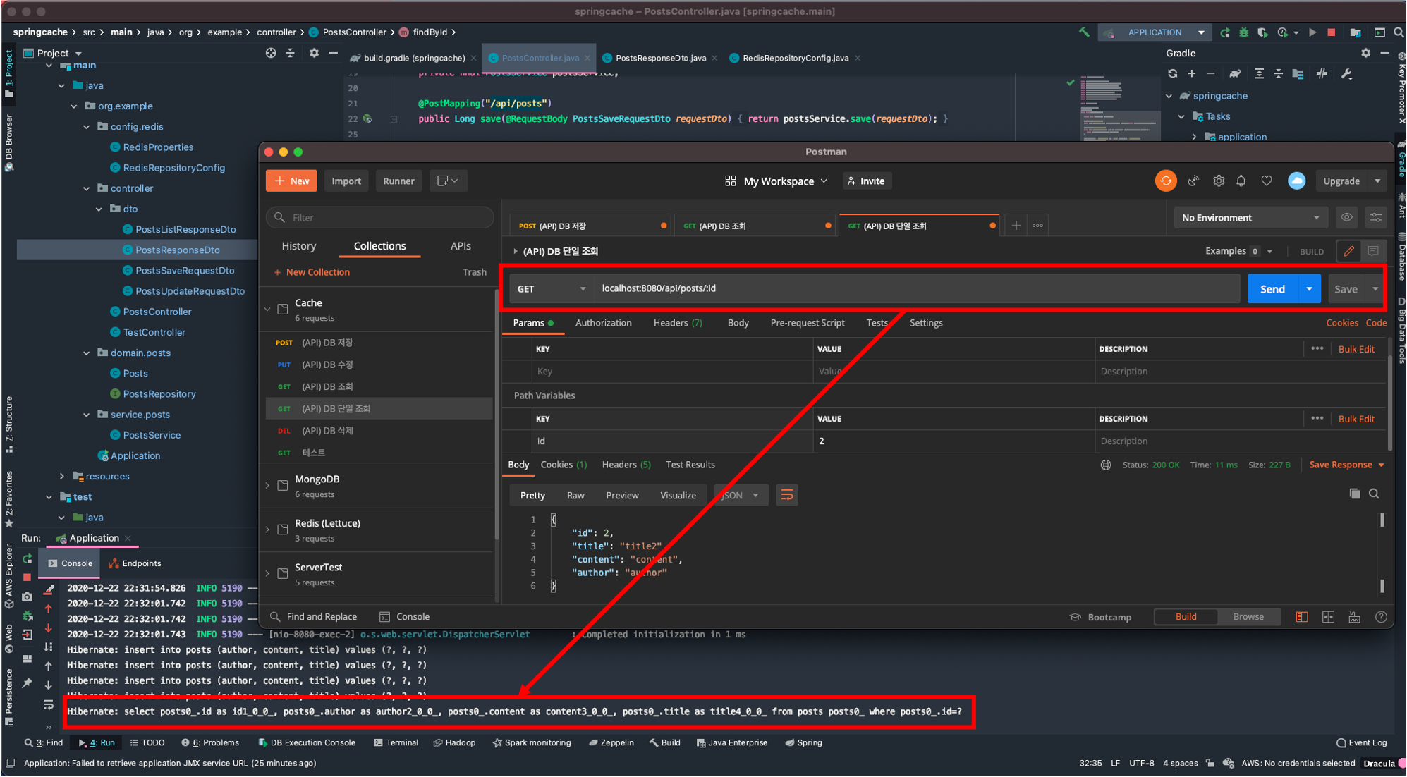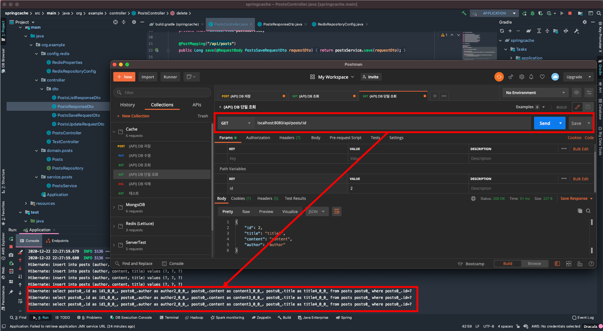 특정 ID의 글을 지우는 요청하나로 서비스에서 실제 데이터를 지우고 동시에 Key로 ID로 저장되어 있는 Redis 키를 삭제할 수 있다.